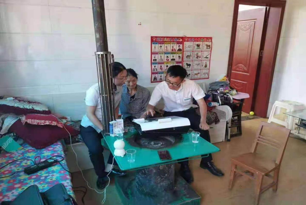 簡加琴(左)深入農(nóng)戶上門為行動(dòng)不便的老年人開卡