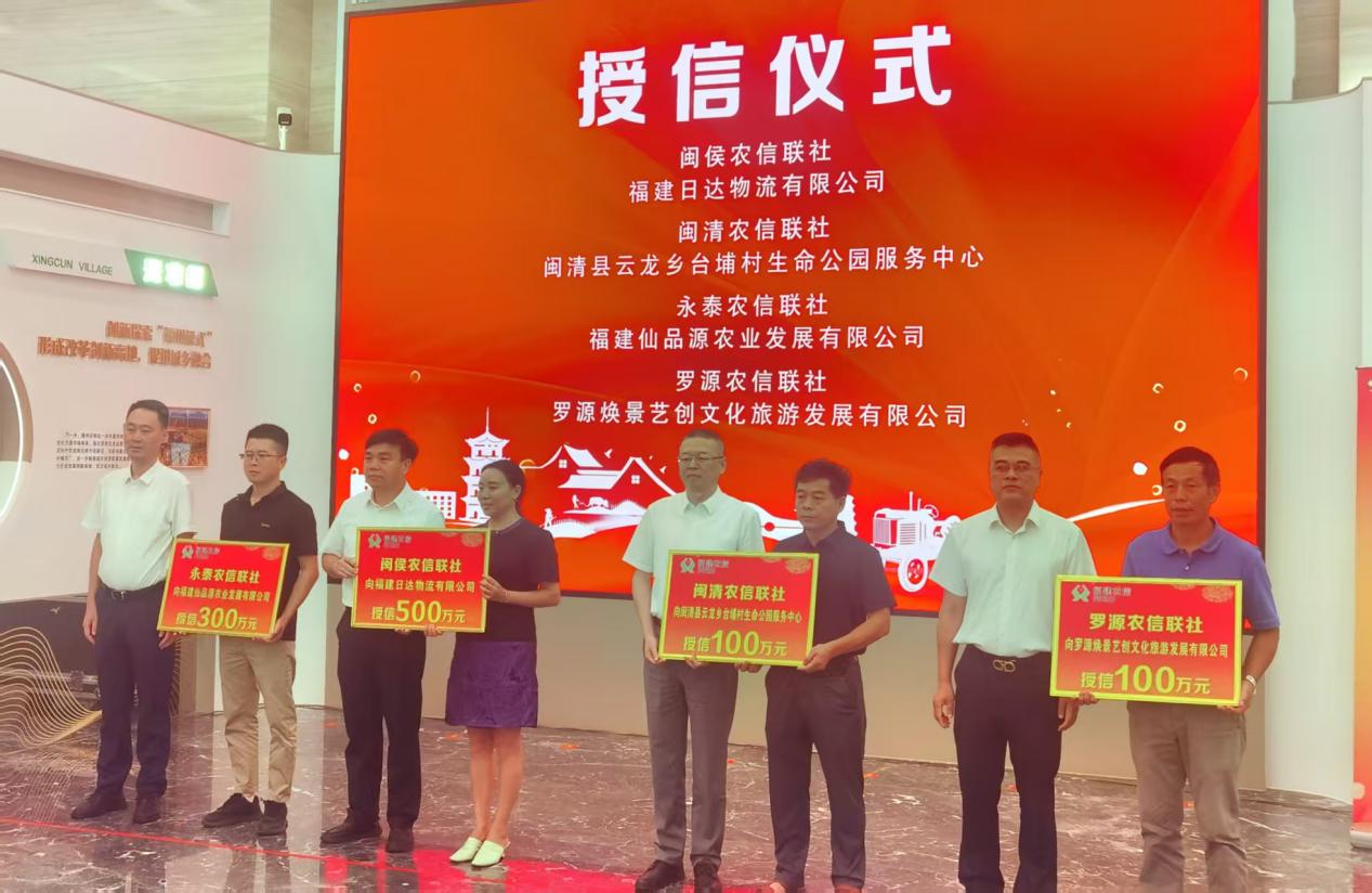 活動現(xiàn)場,福州振興鄉(xiāng)村集團(tuán)、福建農(nóng)信聯(lián)社福州辦事處、福建省農(nóng)業(yè)融資擔(dān)保有限公司簽署“福鑒貸”三方合作協(xié)議,確立了在風(fēng)險共擔(dān)、信息共享、業(yè)務(wù)協(xié)同等方面的合作框架;福州農(nóng)村產(chǎn)權(quán)流轉(zhuǎn)服務(wù)中心、福建省農(nóng)業(yè)融資擔(dān)保有限公司、福州農(nóng)商銀行與連江連丹鑫農(nóng)業(yè)綜合開發(fā)有限公司共同完成首筆業(yè)務(wù)的現(xiàn)場發(fā)放;福州農(nóng)信系統(tǒng)長樂農(nóng)商銀行、福清匯通農(nóng)商銀行、連江農(nóng)商銀行、閩侯農(nóng)信聯(lián)社、閩清農(nóng)信聯(lián)社、永泰農(nóng)信聯(lián)社、羅源農(nóng)信聯(lián)社等7家行社分別向多位農(nóng)村產(chǎn)權(quán)交易主體進(jìn)行集中授信。