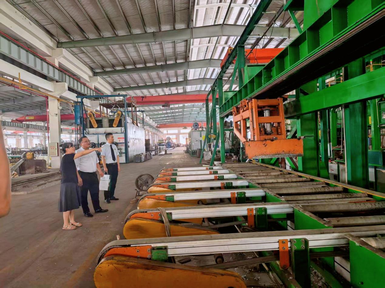 宏興鋁業(yè)負(fù)責(zé)人向郵儲(chǔ)銀行信貸客戶經(jīng)理介紹更新?lián)Q代的生產(chǎn)線 郵儲(chǔ)銀行江門市分行供圖