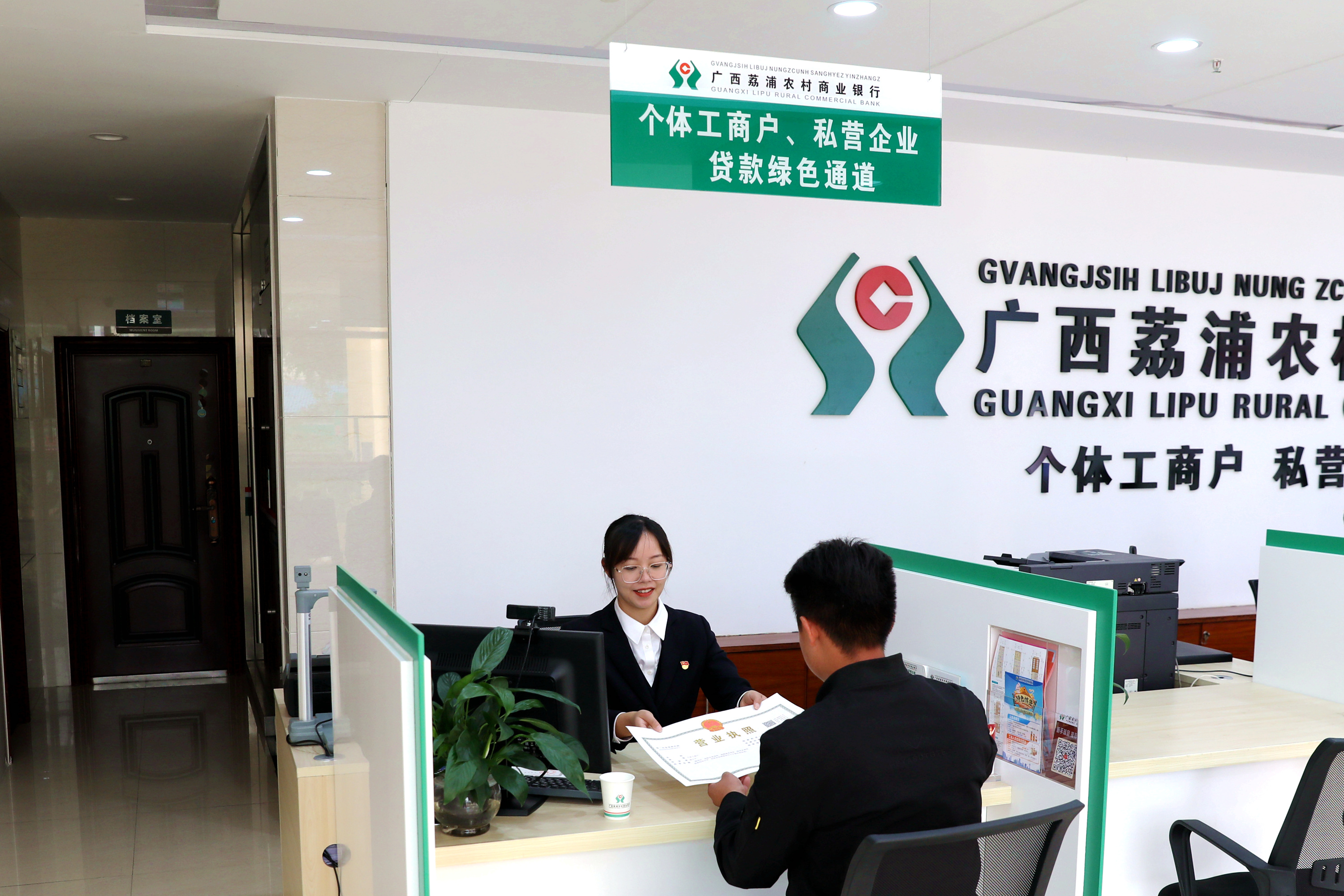 圖為濱江支行工作人員為客戶辦理營業(yè)執(zhí)照 荔浦農(nóng)商銀行/供圖