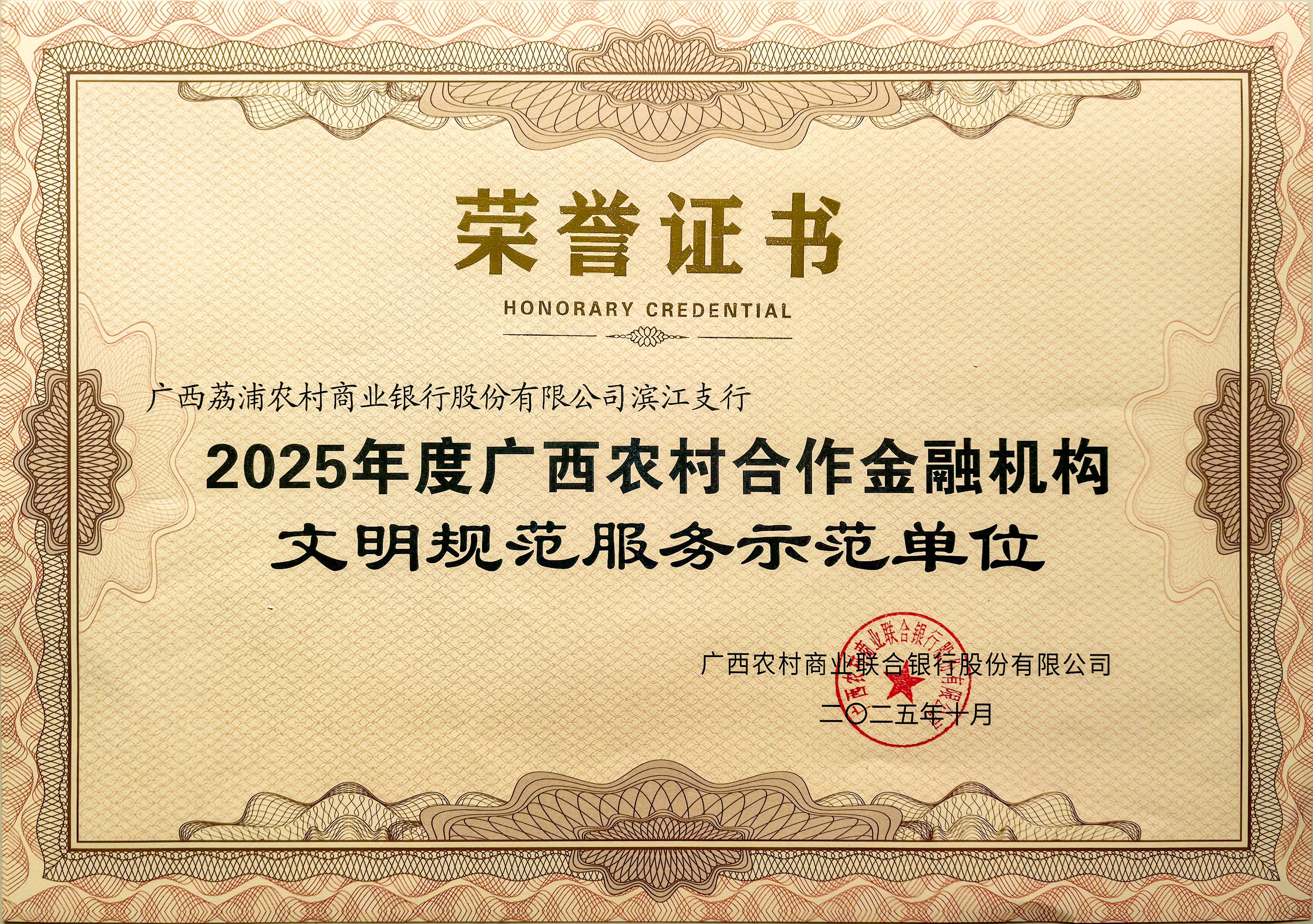 圖為榮譽(yù)證書 荔浦農(nóng)商銀行/供圖