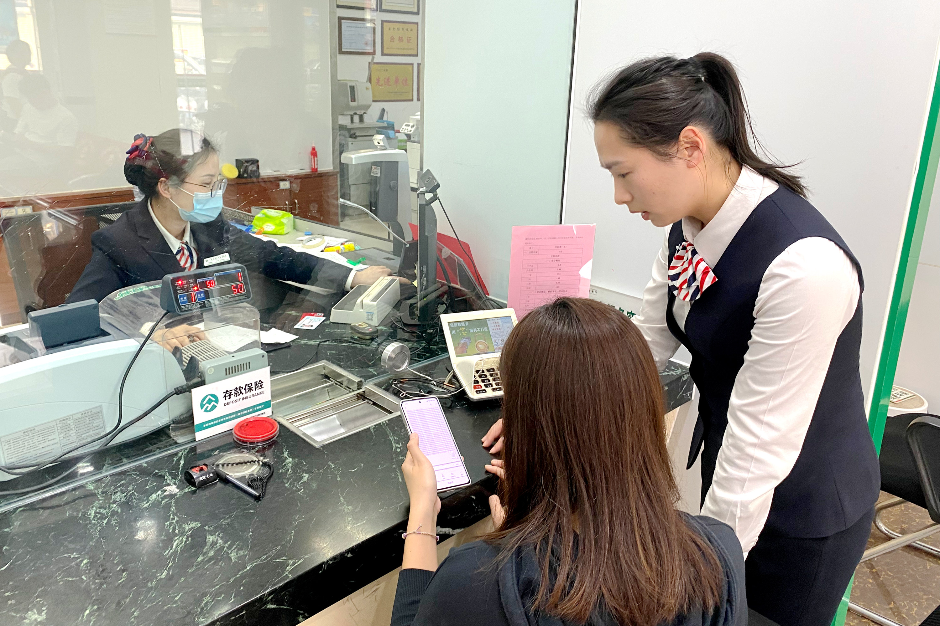 圖為濱江支行工作人員服務(wù)客戶辦理業(yè)務(wù) 荔浦農(nóng)商銀行/供圖