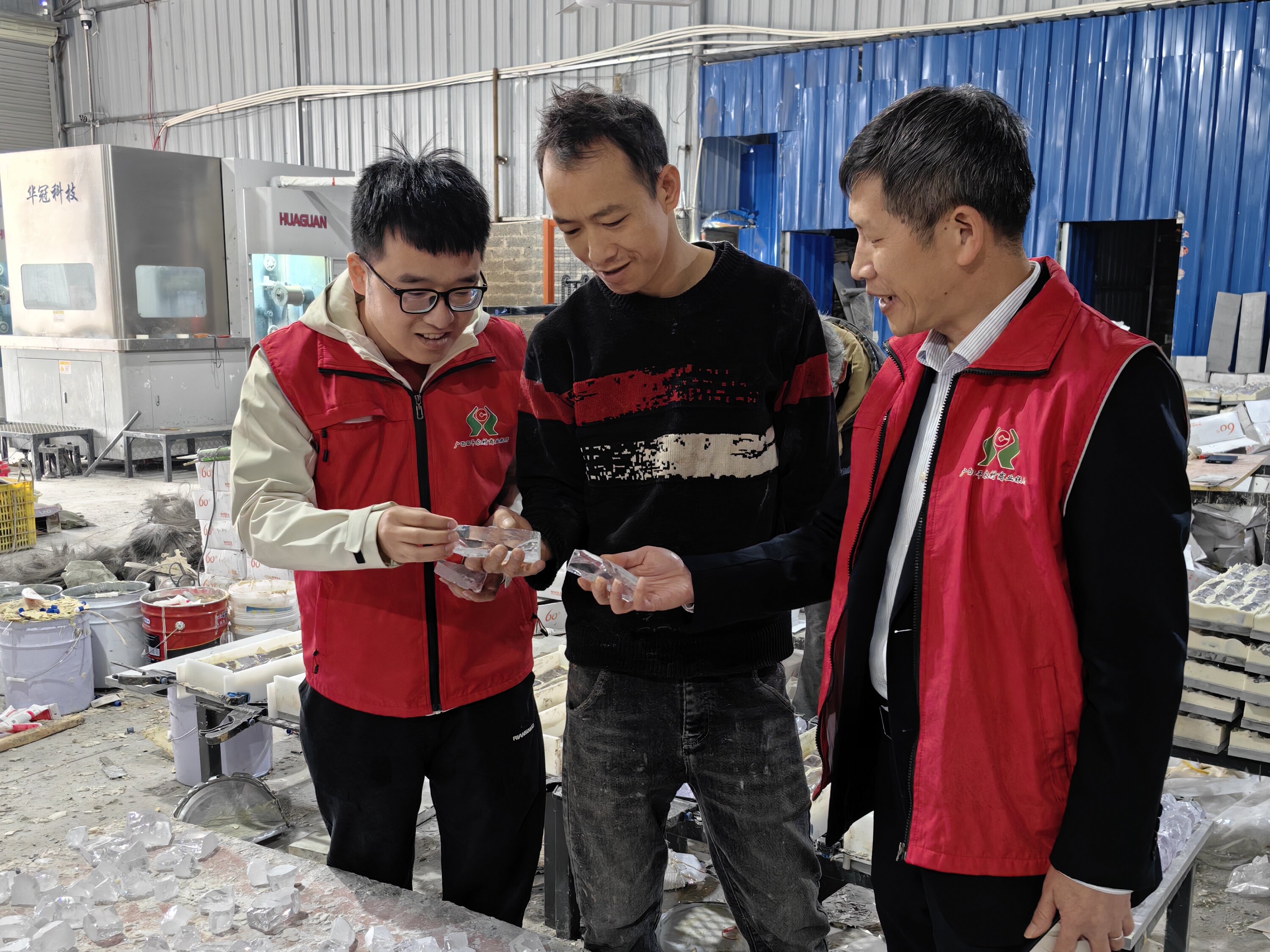 圖為昭平農(nóng)商銀行客戶經(jīng)理調(diào)研寶石加工情況 昭平農(nóng)商銀行/供圖