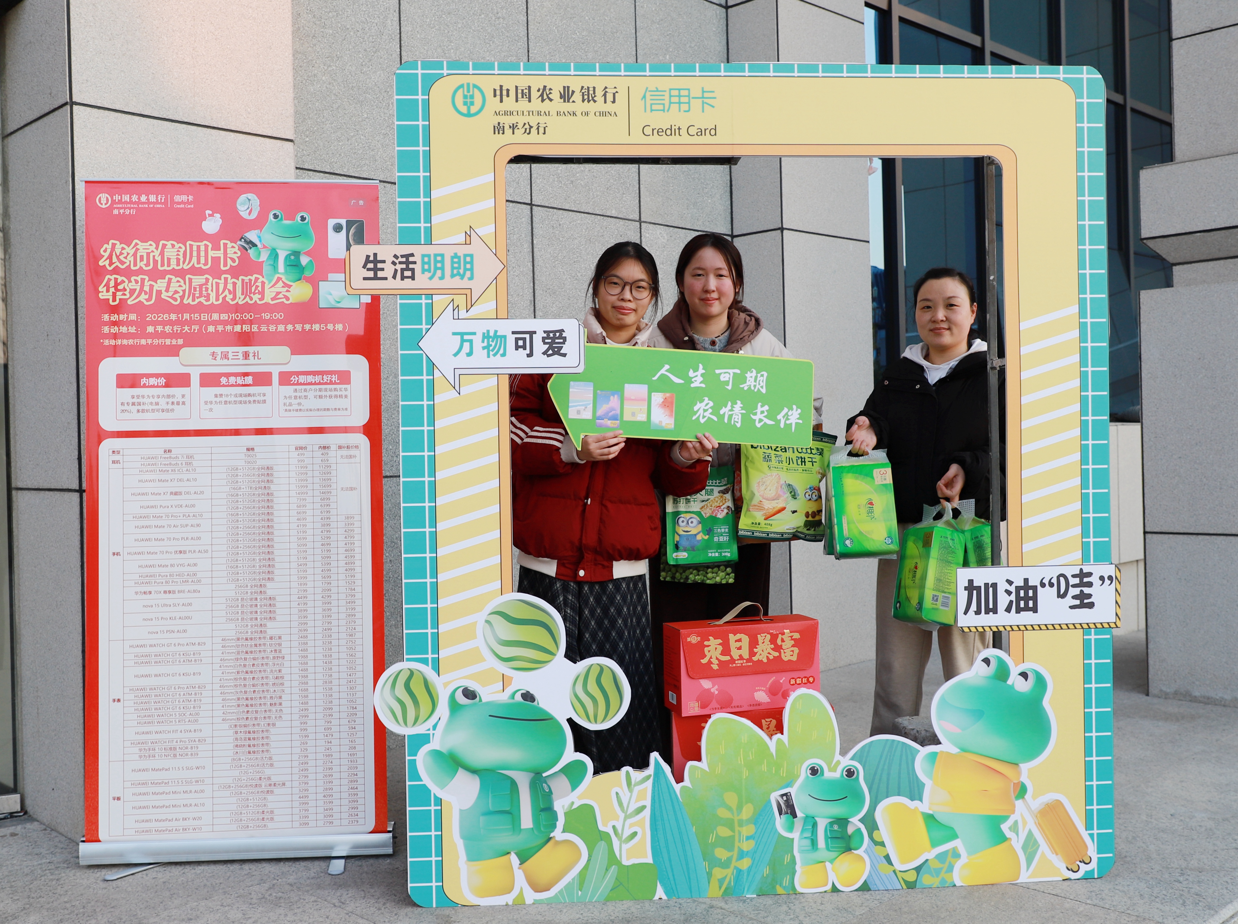 作為連接消費者與商戶的金融橋梁,農(nóng)行南平分行在活動籌備階段便聚焦“惠民、惠商、促消費”核心目標(biāo),統(tǒng)籌推進多方資源深度協(xié)作。該分行通過與華為品牌精準(zhǔn)對接,爭取到熱門手機、數(shù)碼產(chǎn)品專屬內(nèi)購價限時權(quán)益;聯(lián)動閩大山超市精選年貨好物,疊加農(nóng)行信用卡滿減優(yōu)惠,構(gòu)建“專屬讓利+消費滿減+游戲禮遇”三重惠民權(quán)益體系。