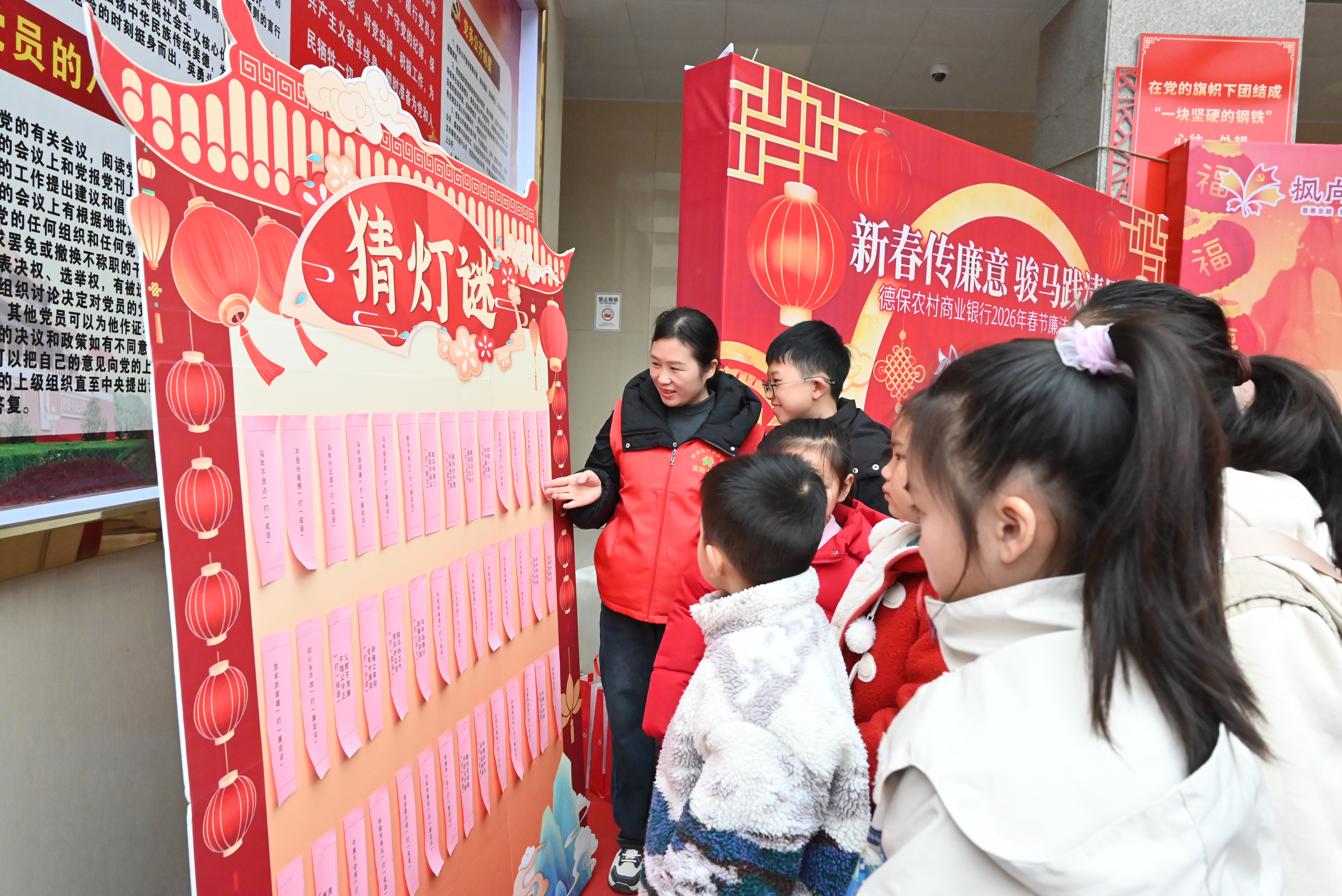 現(xiàn)場(chǎng)設(shè)置的廉潔燈謎專區(qū)吸引干部職工及其子女踴躍參與、競(jìng)猜作答 德保農(nóng)村商業(yè)銀行供圖
