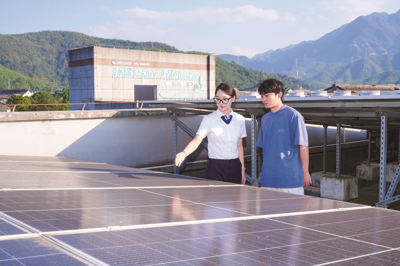 浙江安吉農(nóng)商銀行余村綠色支行金融宣講員介紹屋頂光伏情況 通訊員 劉萬海/攝